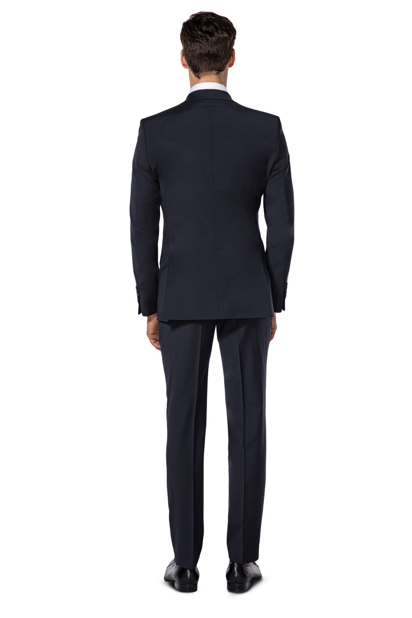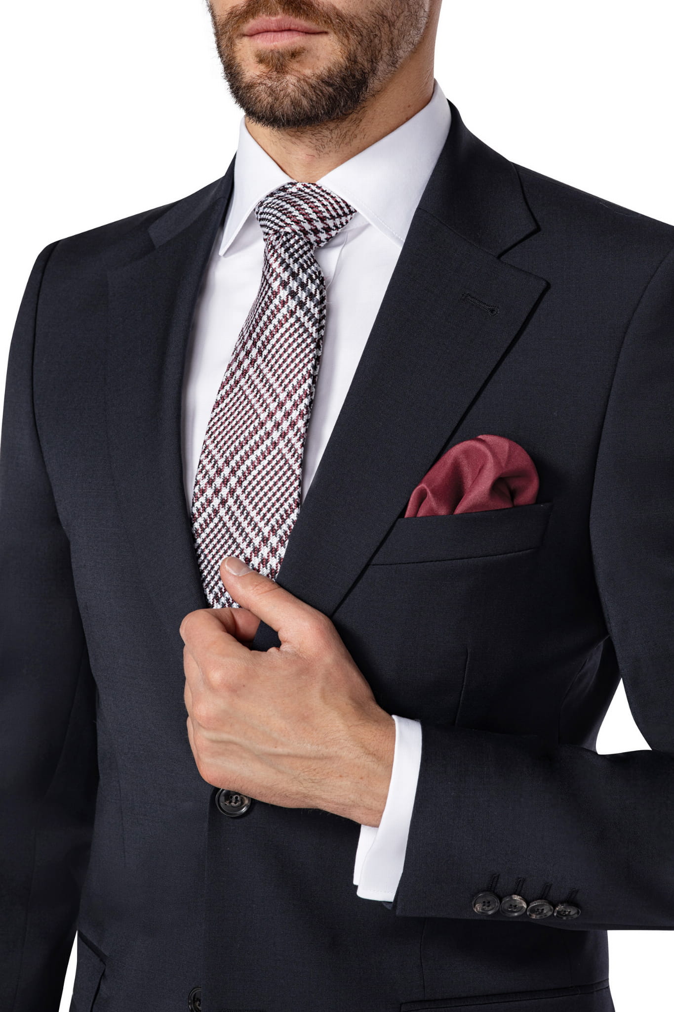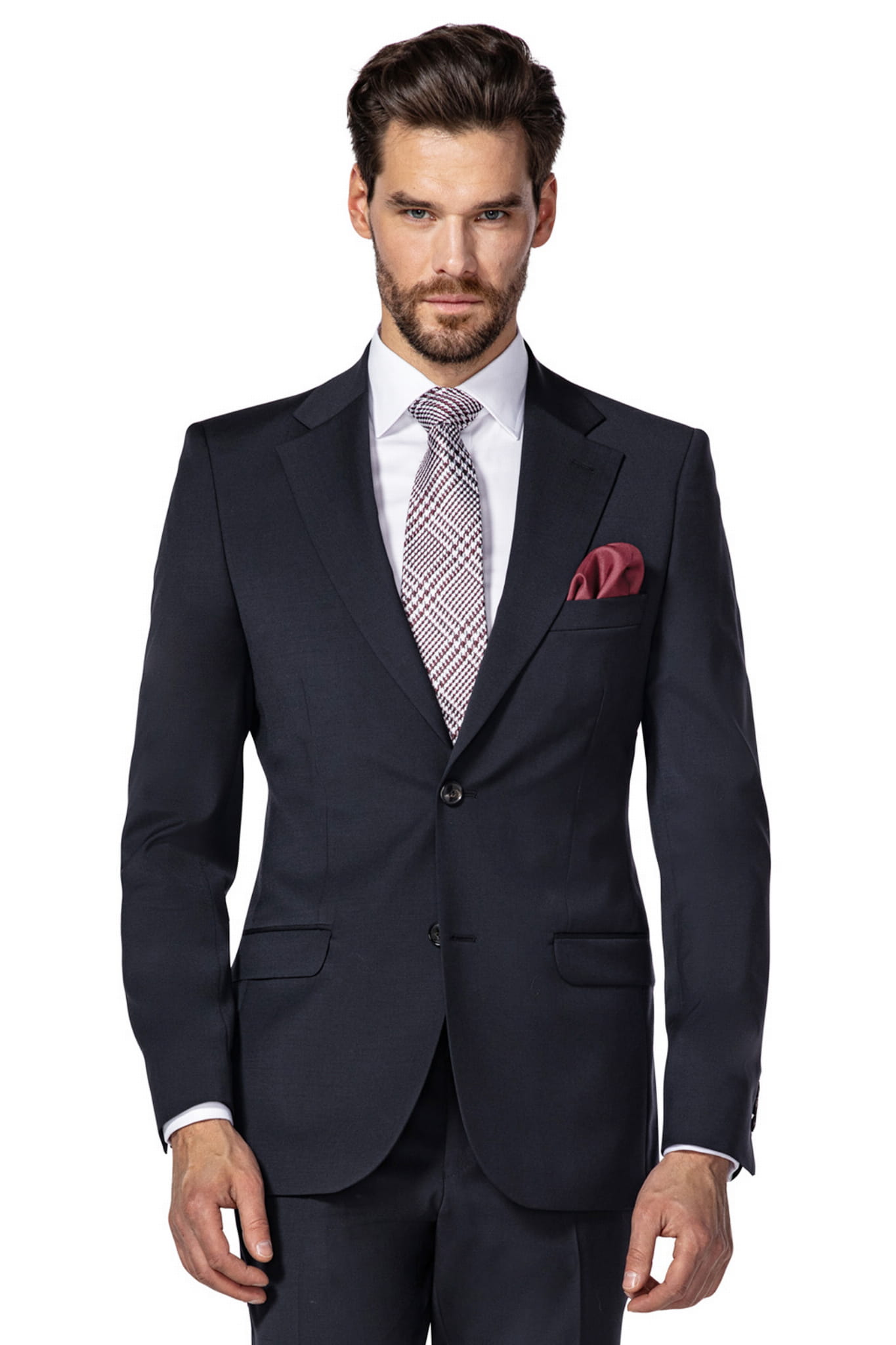 Garnitur Martin to klasyczny, gładki, ciemno grantowy garnitur uszyty w nowoczesnej formie. Zestaw dwuczęściowy składający się z marynarki i spodni.