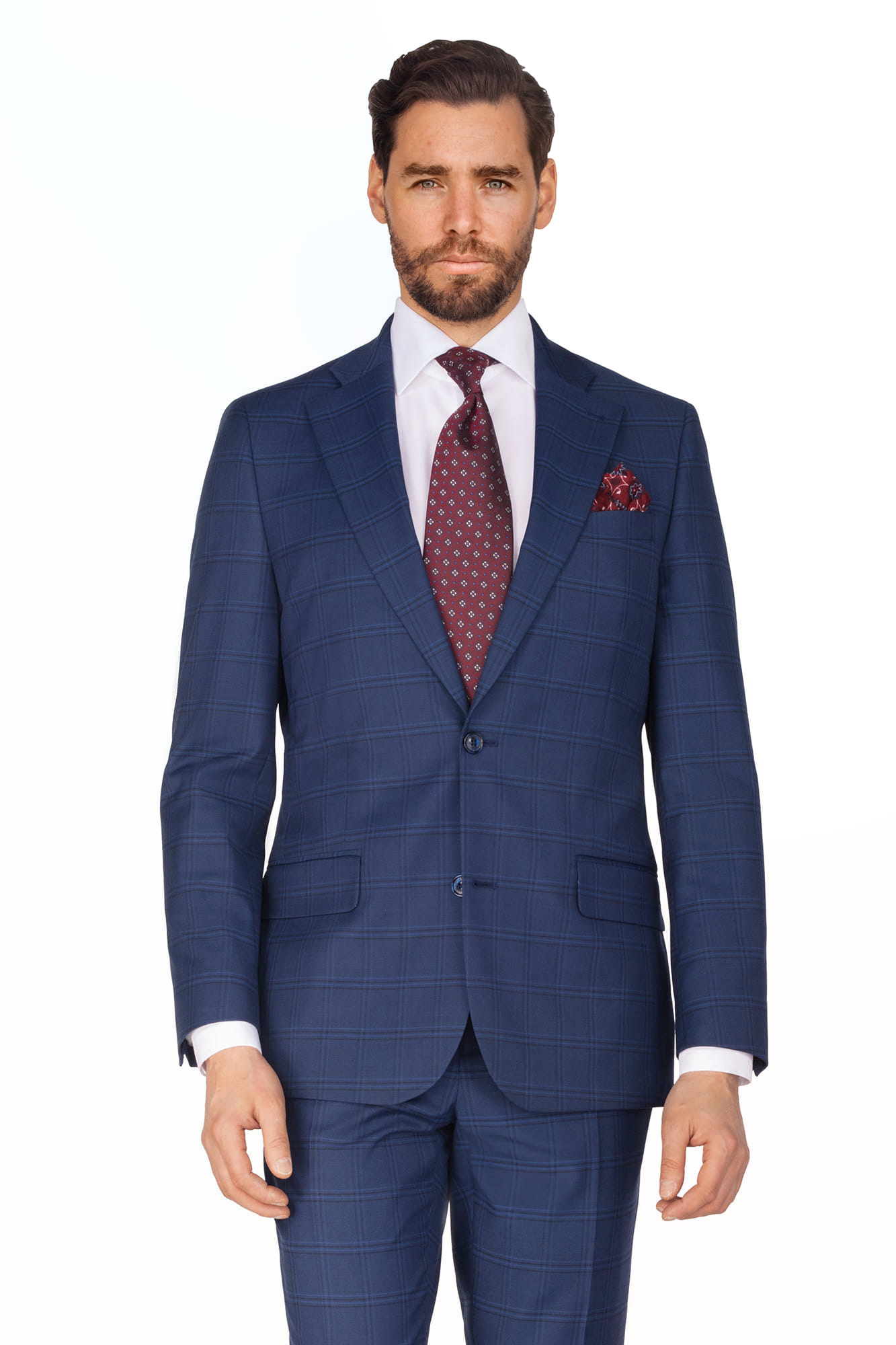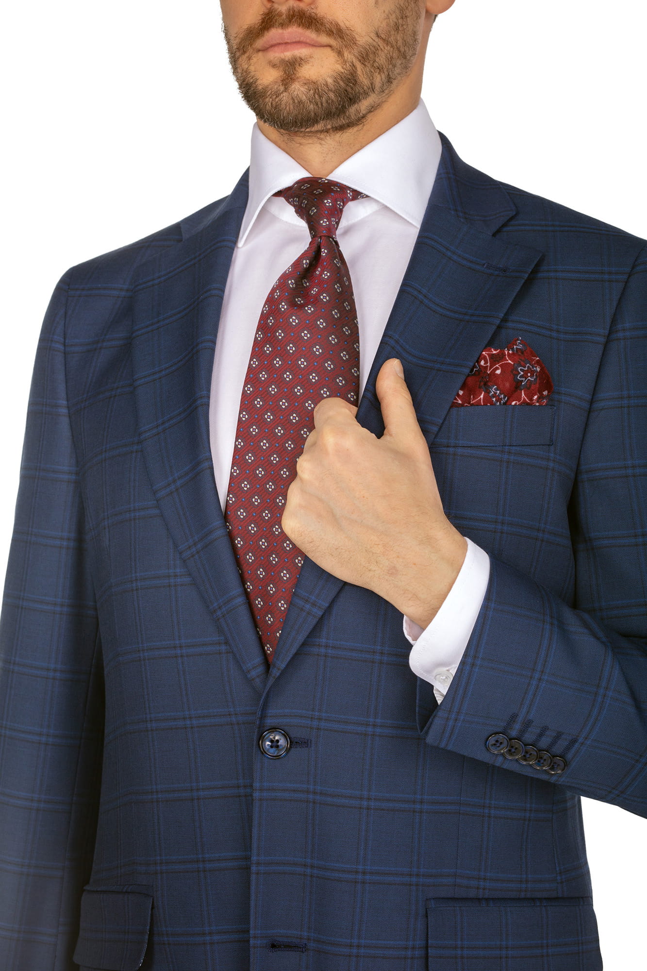 Model San Diego, to klasyczny garnitur w nowoczesnej formie. Zestaw dwuczęściowy składający się z marynarki i spodni. Marynarka jednorzędowa z dwoma guzikami posiada szerokie, klasyczne klapy otwarte a jednocześnie jest utrzymana w formie taliowanej do sylwetki. Z tyłu marynarki znajdziemy dwa rozcięcia nadające swobodę ruchu a jednocześnie pozwalające zachować elegancję. Taki krój pozwala nam na korzystanie z kieszeni bocznych spodni bez podnoszenie tylnej części marynarki. Tkanina to poliwiskoza garniturowa wysokiej jakości. Lycra DuPont zastosowany w tkaninie nadaje całemu ubraniu sprężystości, przez co świetnie dopasuje się do sylwetki. Dużym atutem wykorzystania takiej tkaniny jest wysoka odporność na zagniecenia, jednocześnie gwarantując swobodę przenikliwości powietrza. Marynarka posiada szeroką butonierkę w której bez problemu zmieścimy dowolny dodatek. Spodnie są wyszczuplane, posiadają zaprasowany kant.